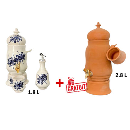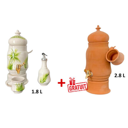 Pack 5 Pièces Baril à huile Distributeur d’huile d’olive + 1 Pack de 4 Pièces gratuit Distributeur d’eau fraiche en fine céramique fait main motif Tatou amazigh