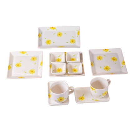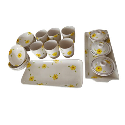 Service à dessert de 20 pièces en fine céramique fait main pour 6 personnes Fleurs des champs
