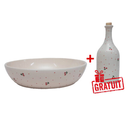 Pack Double Plaisir à Table La Cerise : 1 Grand saladier de service + 1 Gratuit Huilier assortie