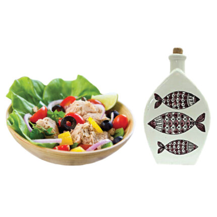 Bouteille multi usage design rectangulaire avec double anses motif arabesque en fine céramique fait main
