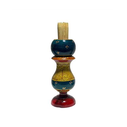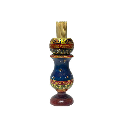 Porte cure dent de décorative design vase rustique peint à la main sur bois d’olivier motif arabesque Souvenir De Tunisie