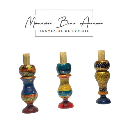 Un Porte cure dent de décorative peint à la main sur bois d’olivier Sélection de figurine d’homme tunisien en habit traditionnel Souvenir De Tunisie