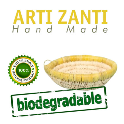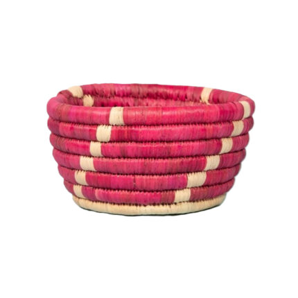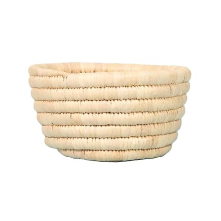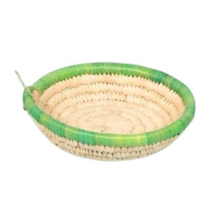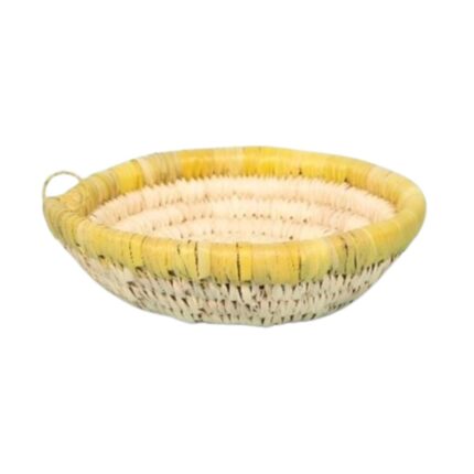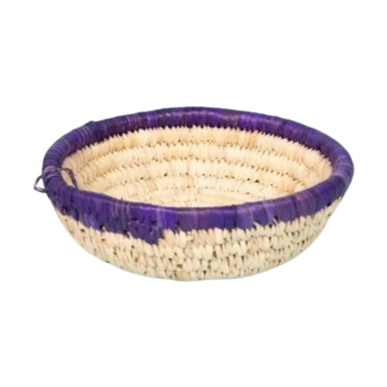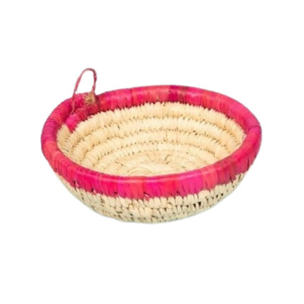 Corbeilles multifonctionnelles rondes faites à la main en fibre de palmier naturelle bicolore.