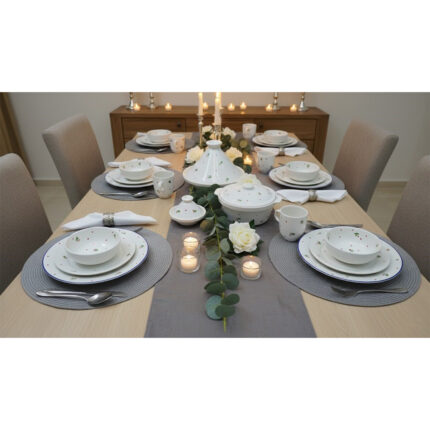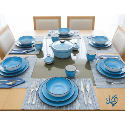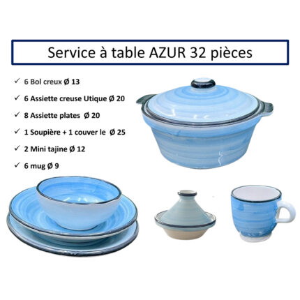 Service a table 32 pièces Azur en fine céramique émaillée fait main création peinte à la main
