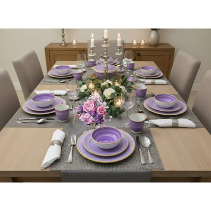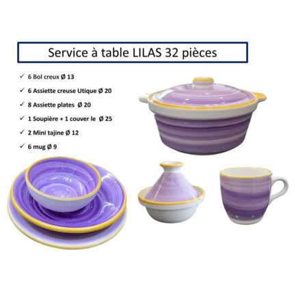 Service a table 32 pièces Lilas en fine céramique émaillée fait main création peinte à la main