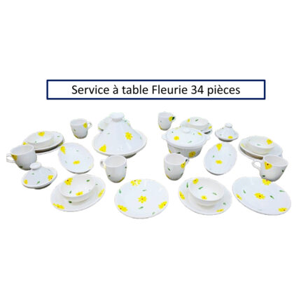Service a table 34 pièces Fleurie en fine céramique émaillée fait main création peinte à la main