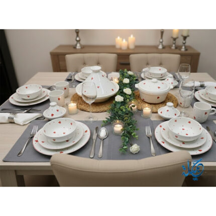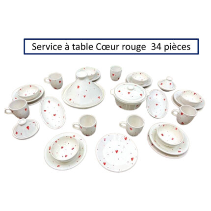 Service a table 34 pièces Cœur rouge en fine céramique émaillée fait main création peinte à la main