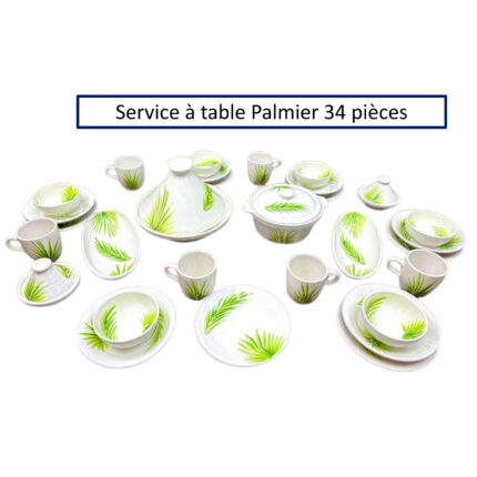 Service a table 34 pièces Palmier en fine céramique émaillée fait main création peinte à la main