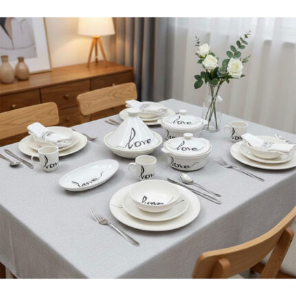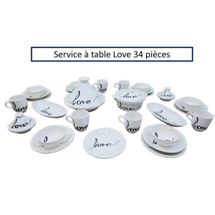 Service a table 34 pièces Love en fine céramique émaillée fait main création peinte à la main