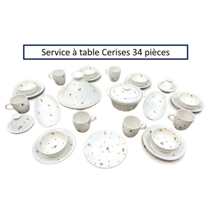 Service a table 34 pièces Cerise en fine céramique émaillée fait main création peinte à la main