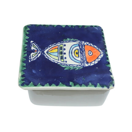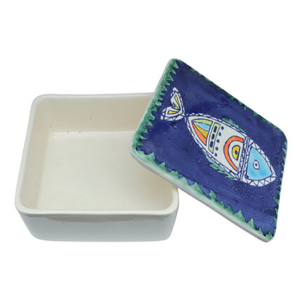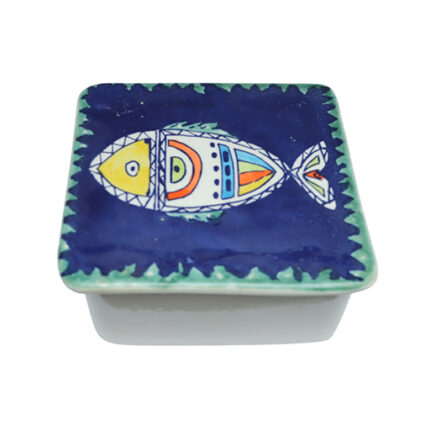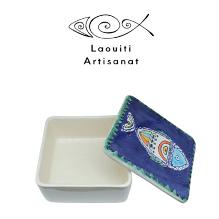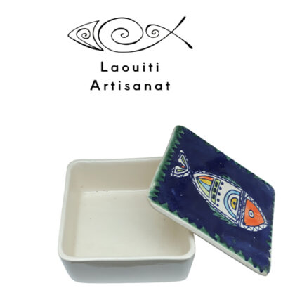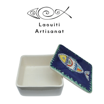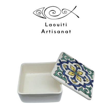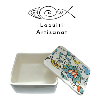 Ramequin carré avec couvercle motif arabesque en fine céramique fait main MM