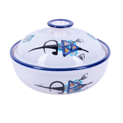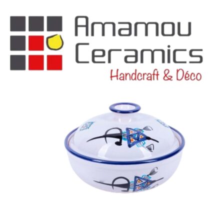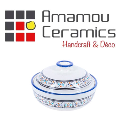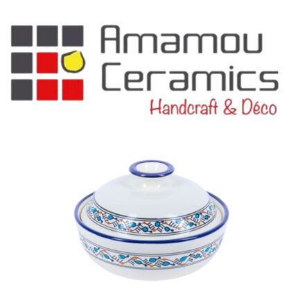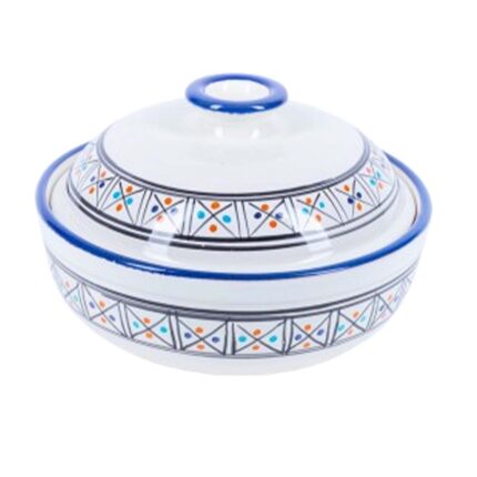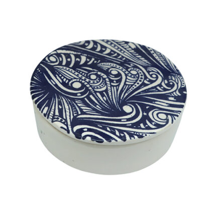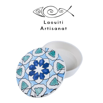 Ramequin rond avec couvercle motif arabesque en fine céramique fait main MM