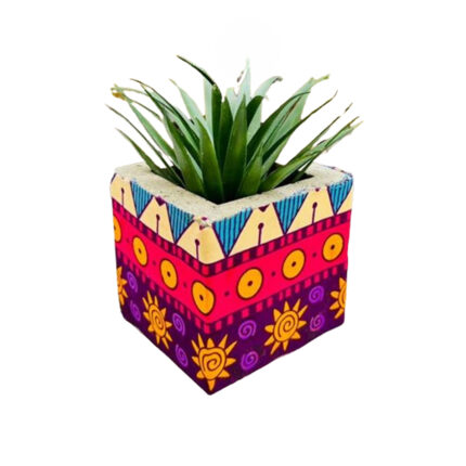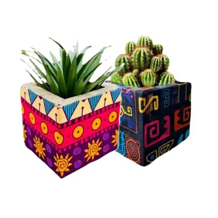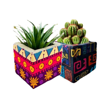 Cache pot carré haut de gamme en tissu coton wax de qualité supérieure et structure en bois dur C 1