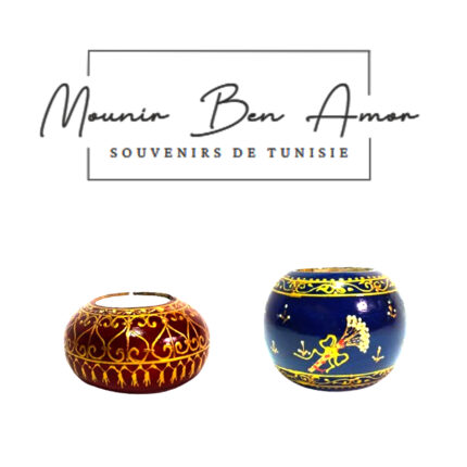 Bougeoir haute gamme en bois d’olivier peint à la main design sphère motif machmoum de la collection Souvenir De Tunisie