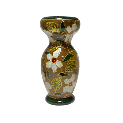 Bougeoir haute gamme en bois d’olivier peint à la main design Vase motif Jasmins de la collection Souvenir De Tunisie