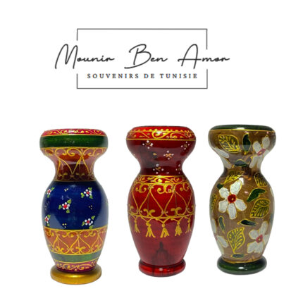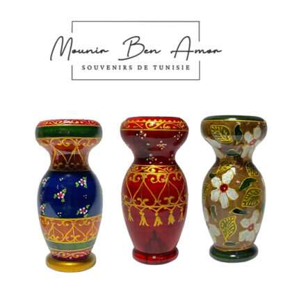 Bougeoir haute gamme en bois d’olivier peint à la main design Vase motif arabesque de la collection Souvenir De Tunisie