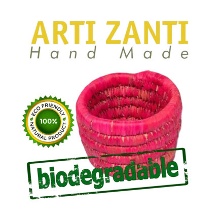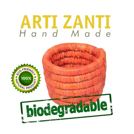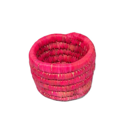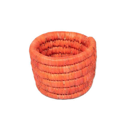 Cache pot rond en orange corail rustique tressé à la main en fibre naturelle de palmier