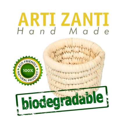 Cache pot rond en couleur naturel rustique tressé à la main en fibre naturelle de palmier