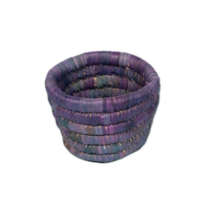 Cache pot rond en bleu rustique tressé à la main en fibre naturelle de palmier
