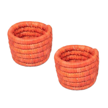 Ensemble de 2 Cache pots ronds en orange corail rustique tressés à la main en fibres naturelles de palmier