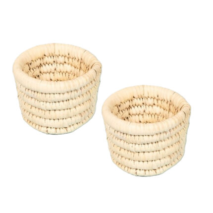 Ensemble de 2 Cache pots ronds en couleur naturel rustique tressés à la main en fibres naturelles de palmier