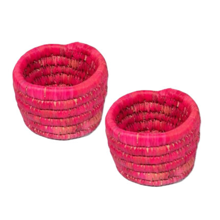Ensemble de 2 Cache pots ronds en rose rustique tressés à la main en fibres naturelles de palmier