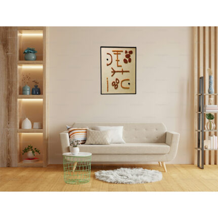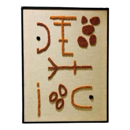 Tableau d’art textile Fait à la main Monté sur cadre en bois noble en noir Motif en relief brodée à la main en orange terracotta