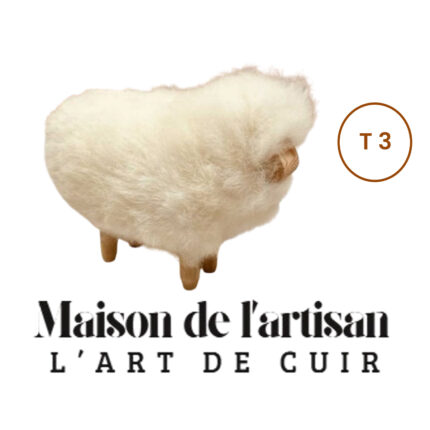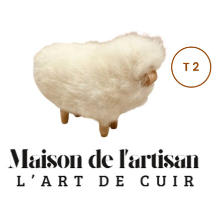 Petit mouton décoratif en bois massif et laine 100% naturel confectionnés à la main T3