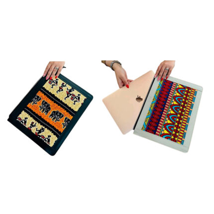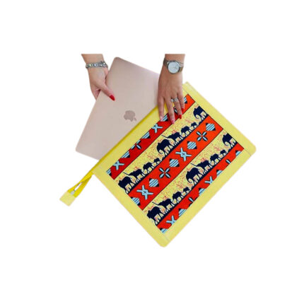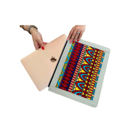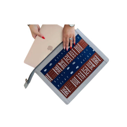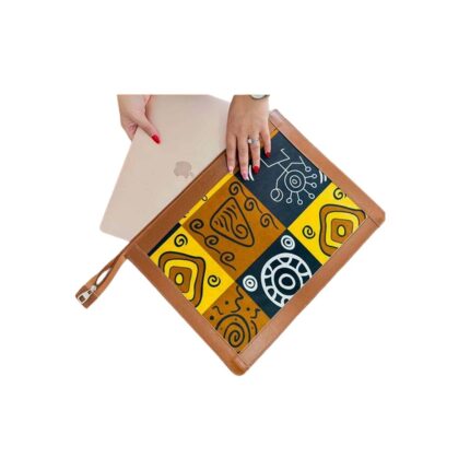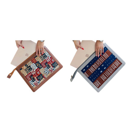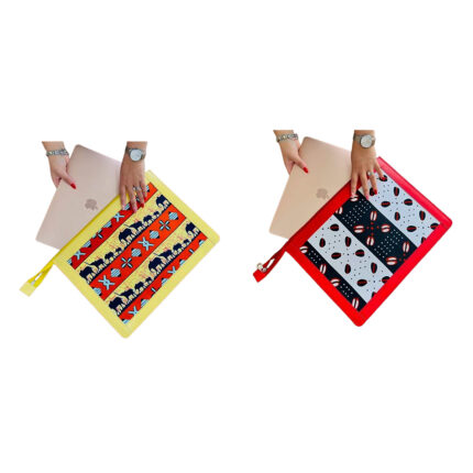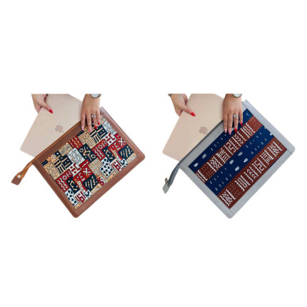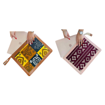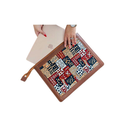 Housse ordinateur portable 13 pouces originale en tissu coton wax habillage en cuir véritable N° 29