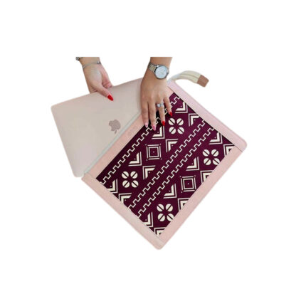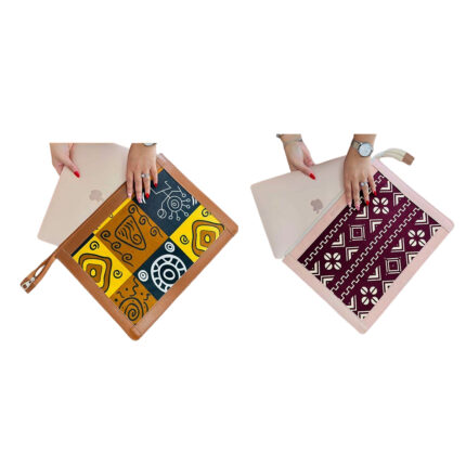 Housse ordinateur portable 13 pouces originale en tissu coton wax habillage en cuir véritable N° 25