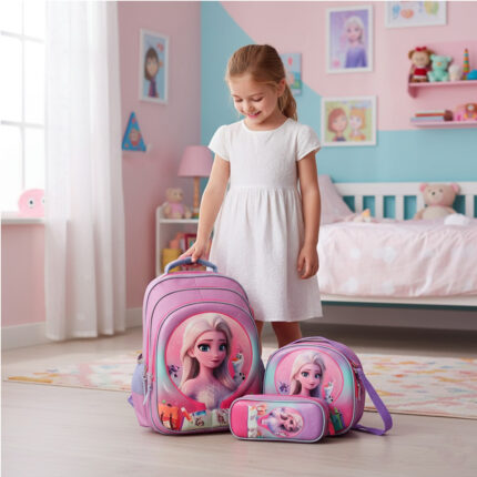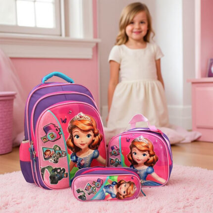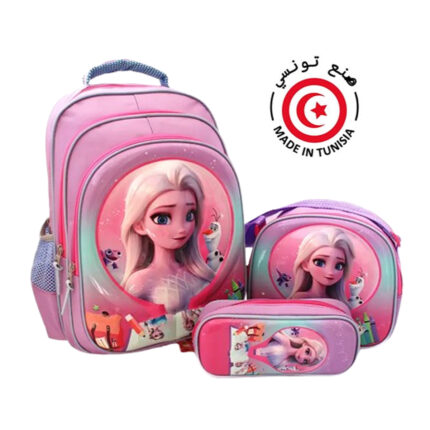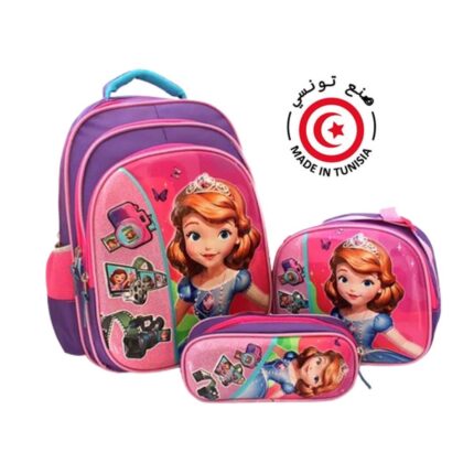 Ensemble scolaire GM haut de gamme 3 pièces design Princesse: 1 Cartable spacieux avec bretelles rembourrées et dos ergonomique 1 Panier isotherme idéal pour les goûters ou déjeuners 1 Trousse assortie pour stylos et accessoires