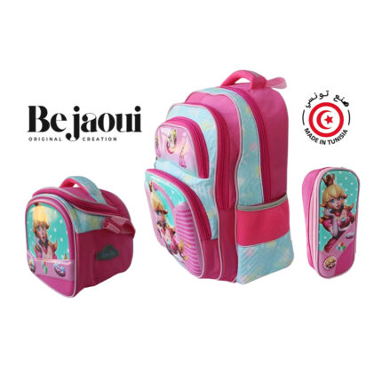 Ensemble scolaire MM haut de gamme 3 pièces design SOFIA : 1 Cartable spacieux avec bretelles rembourrées et dos ergonomique 1 Panier isotherme idéal pour les goûters ou déjeuners 1 Trousse assortie pour stylos et accessoires