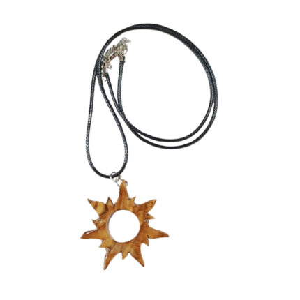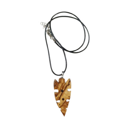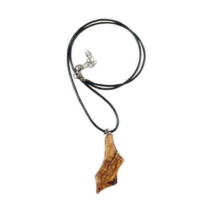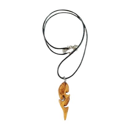 Collier orné d’un pendentif en bois noble sculpté en forme d’ amulette porte bonheur . Inspiré de la nature