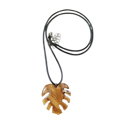 Collier orné d’un pendentif en bois noble sculpté en forme de Feuille de Monstera . Inspiré de la nature