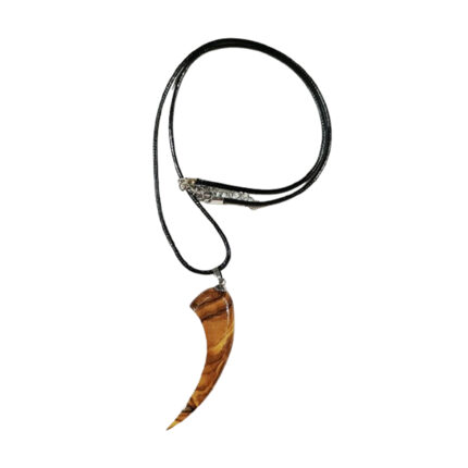 Collier orné d’un pendentif en bois noble sculpté en forme de corne. Inspiré de la nature