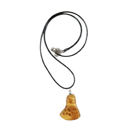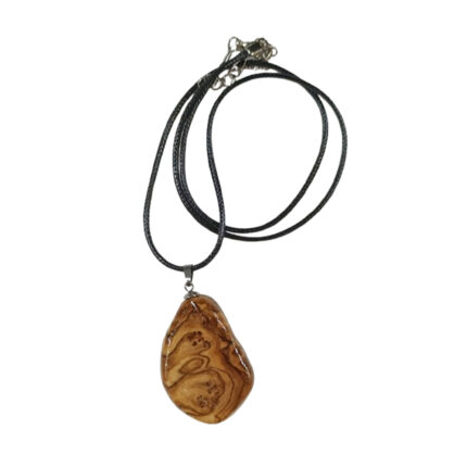 Collier orné d’un pendentif en bois noble sculpté en forme perle amulette porte bonheur . Inspiré de la nature