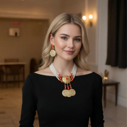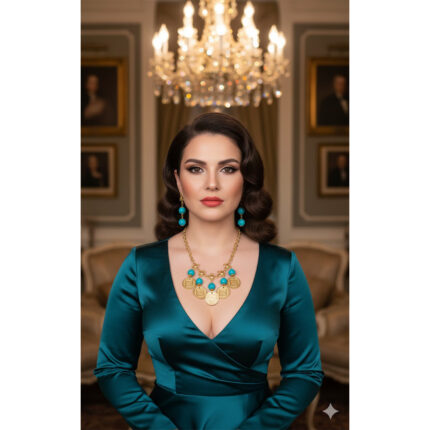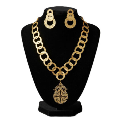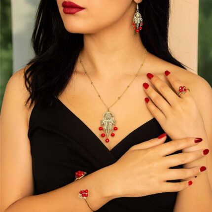 Coffret de Parure design vintage khamsa motifs Amber en cuivre trempé dans de l’or Une pièce unique artisanal