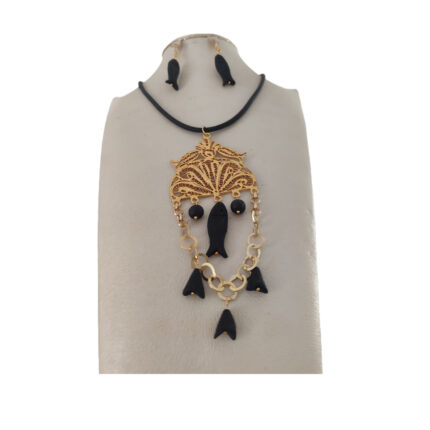 Coffret de Parure design vintage khamsa en filigrane et cuivre trempé dans de l’or Une pièce unique artisanal