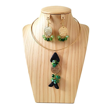 Coffret de Parure design vintage en perles et cuivre trempé dans de l’or Une pièce unique artisanal