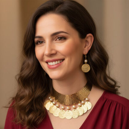 Coffret de Parure design vintage mahboub perle et cuivre trempé dans de l’or Une pièce unique artisanal