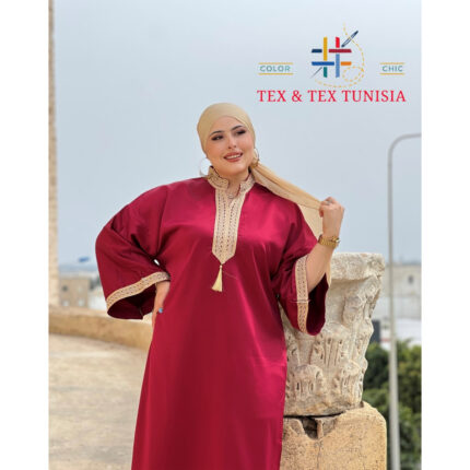 Jebba fashion printemps-été 2025 – Jebba « Joury » en Satin Osaka en broderie argentée sur la poche et poitrine, en rouge bordeaux