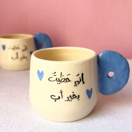 Mugs à café esprit vintage motif : ini hadhayto bi 5airi ab, en céramique artisanale fait main