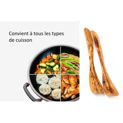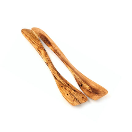 Set de 2 Grande Spatules de cuisine – Spatule large et Spatule Perforée – en bois d’olivier fait main