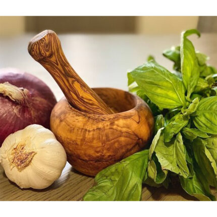 Ensemble de Mortier et Pilon design bombé en Bois d’Olivier fait main D12