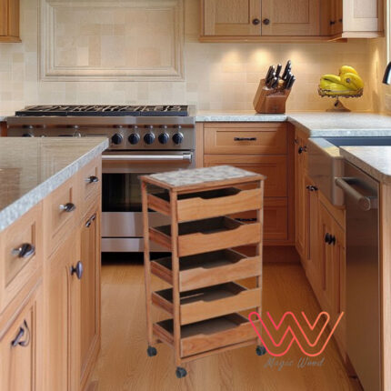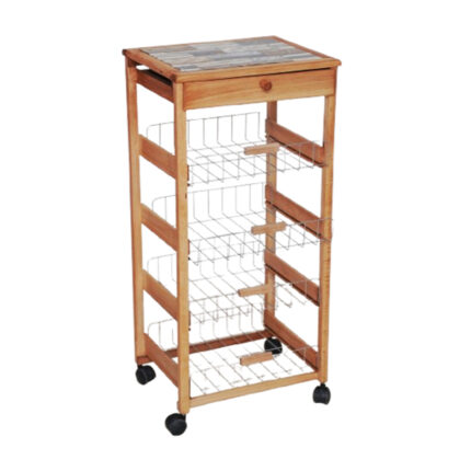 Étagère mobile de rangement légumes avec 5 paniers en bois hêtre Fabrication artisanale