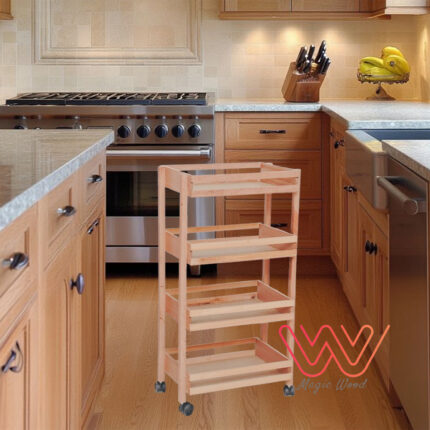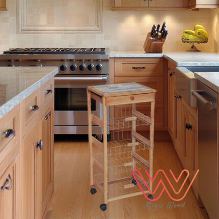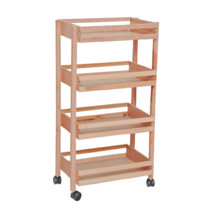Étagère mobile de rangement légumes avec 4 paniers en bois hêtre Fabrication artisanale