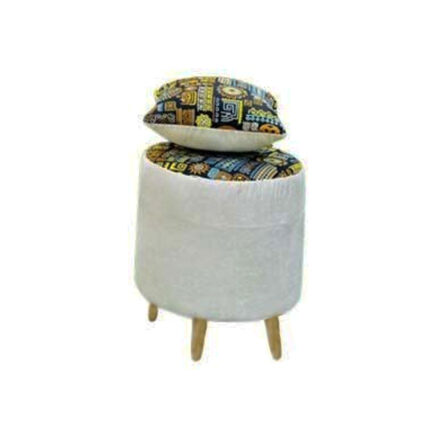 Duo Coussin carré et Tabouret Pouf Assise de Luxe rembourré haut de gamme en tissu coton wax de qualité supérieure coloré bordure en blanc