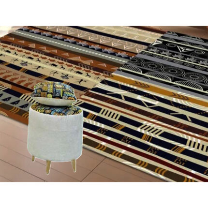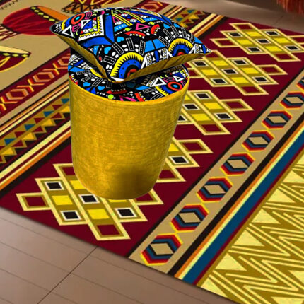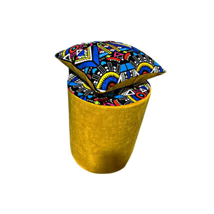 Duo Coussin carré et Tabouret Pouf Assise de Luxe rembourré haut de gamme en tissu coton wax de qualité supérieure coloré bordure en jaune