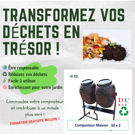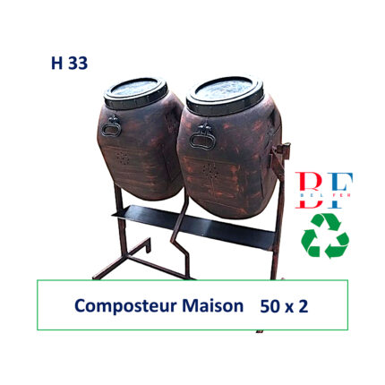 Composteur Maison H 33 – Composteur rotatif 50 L X 2 – Deux Compartiment – Produits issus du recyclage