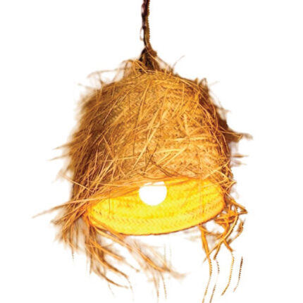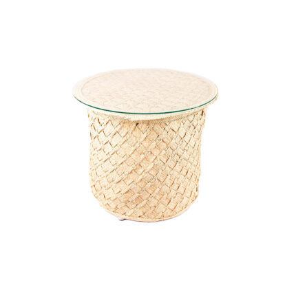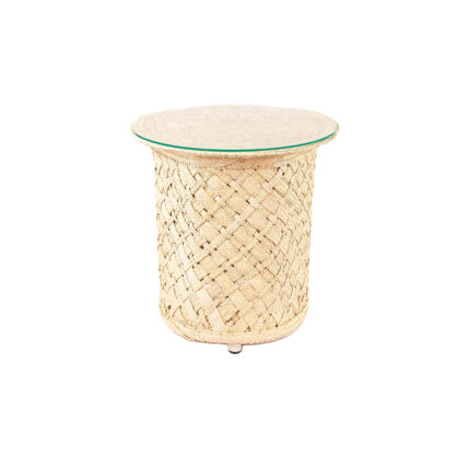Table Lumineuse rustique design classique habillage en en fibre de palmier naturelle tressée à la main PM